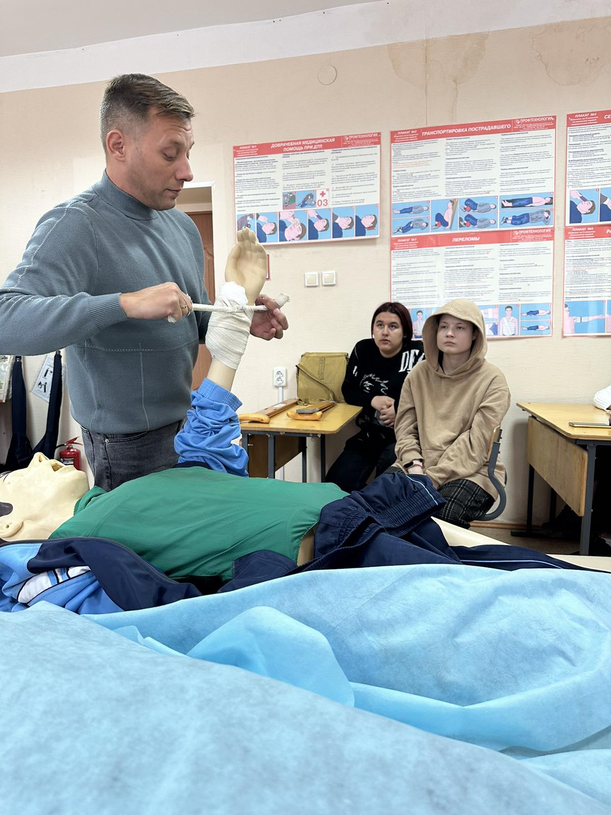 С ними были проведены занятия по оказанию методической и практической помощи, эвакуации раненных, наложения повязок при различных видах травм на различные области тела, иммобилизации, транспортировки пострадавших.