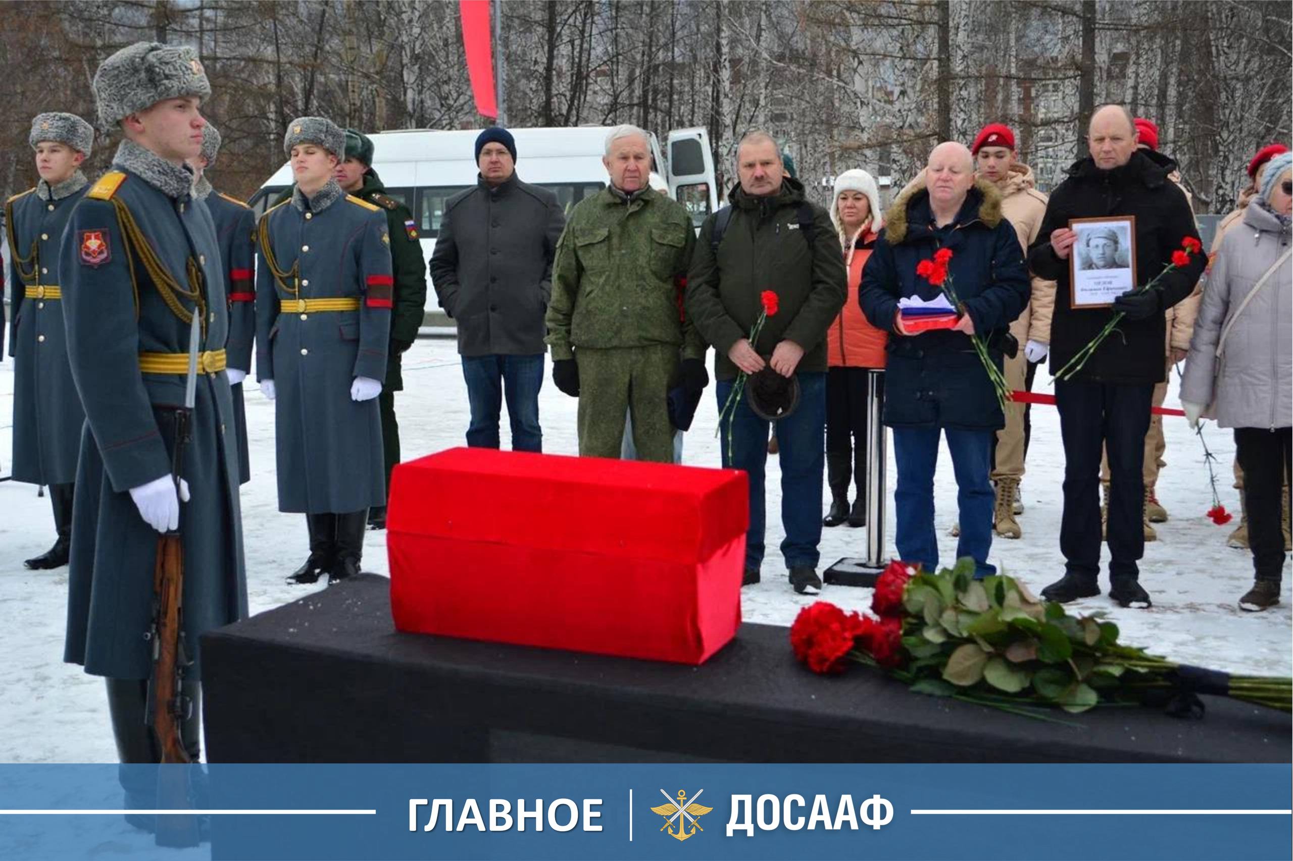 Церемонию передачи и захоронения погибшего воина организовали представители ДОСААФ России, ведущего с поисковыми отрядами большую работу, направленную на поиск пропавших без вести военнослужащих и их последующую идентификацию на основе медальонов, именных личных вещей и архивных документов. Особую важность эта работа приобретает в год 80-летия Победы советского народа в Великой Отечественной войне 1941-1945 годов и год Защитника Отечества. ДОСААФ возвращает имена, несмотря на времена!