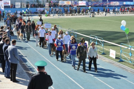 В воскресенье стадион с самого утра начал наполнятся представителями силовых структур, кинологических служб различных ведомств, любителями и спортсменами со своими питомцами: немецкими, кавказскими, бельгийскими, среднеазиатскими, восточно-европейскими овчарками, русским черным терьером, лабрадором ретривером, ротвейлером.