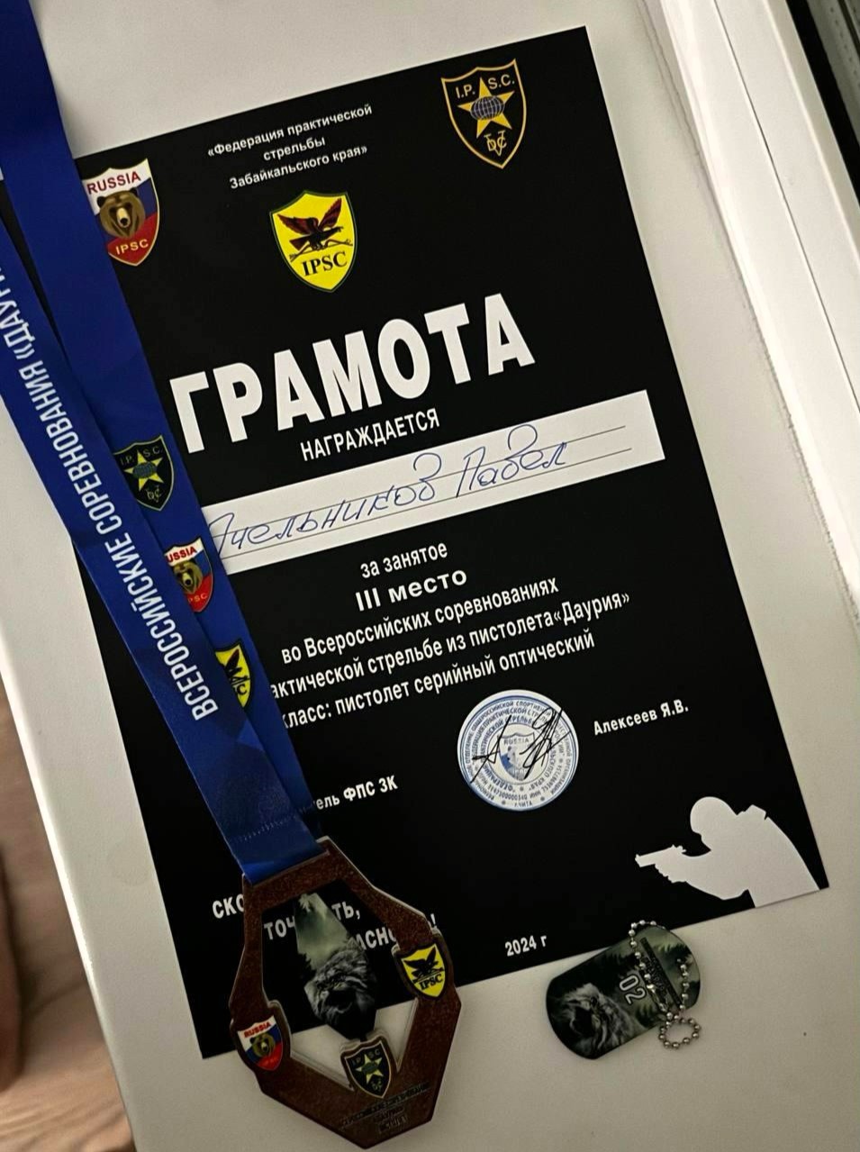 Он завоевал бронзовую награду в практической стрельбе из пистолета «Даурия» (дисциплина - пистолет серийный оптический) и выполнил норматив кандидата в мастера спорта.